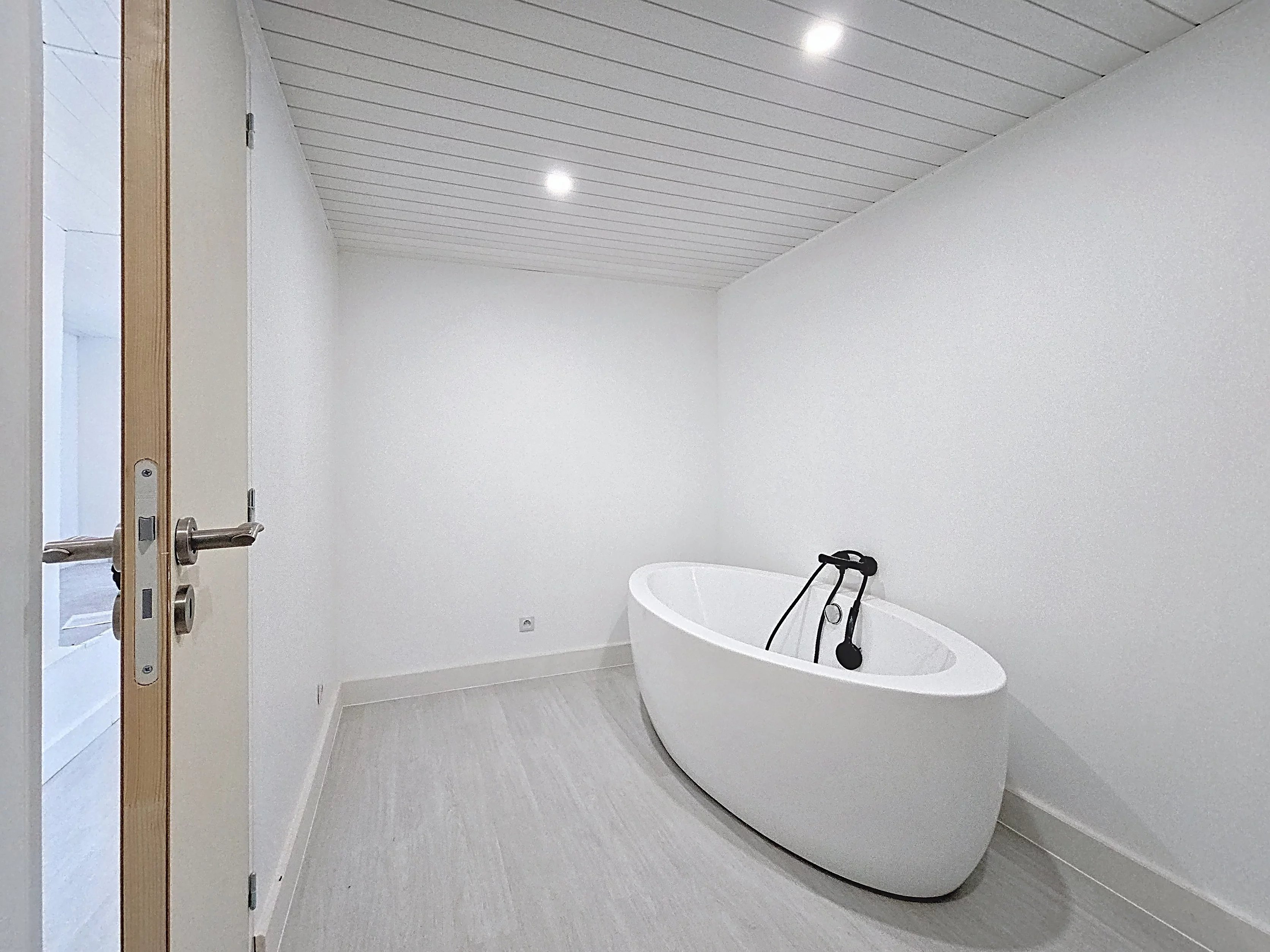 • Salle de bain avec baignoire et douche